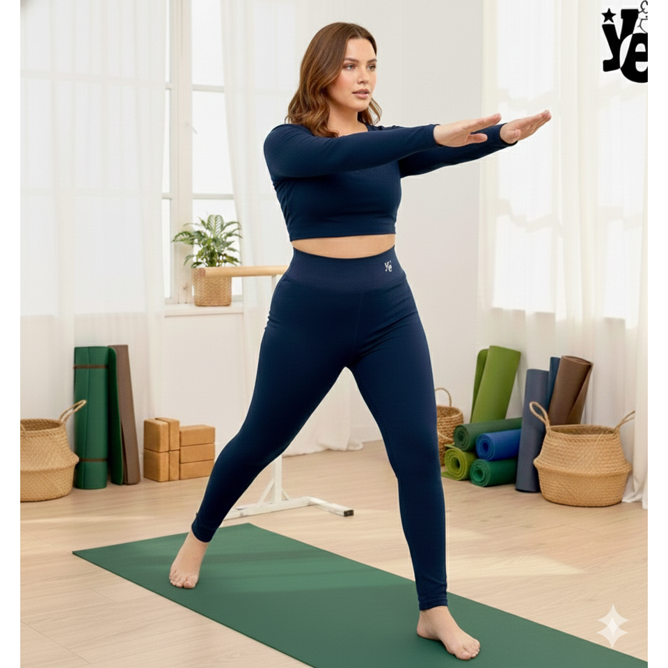 High-Waisted Full-Length Yoga Leggings Women Tummy Control Seamless Spandex Activewear Pants Solid Blue Elastic Waist Simple