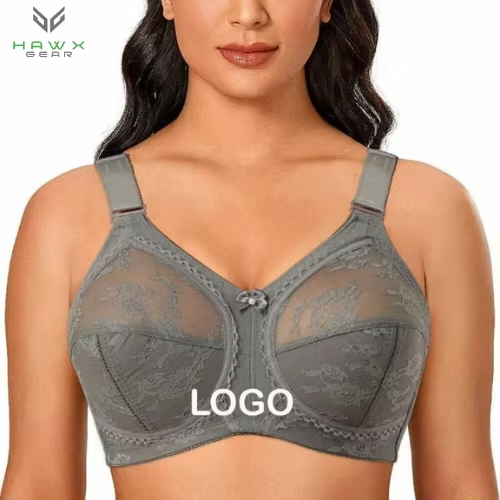Women's Ultra-Thin Wireless Adjustable Strap Minimizer Sports Bra Unlined Full Coverage Lace Breathable Plus Size Simple Style