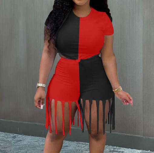 Women's Unique Style 2-Piece Eco-Friendly Breathable Cotton Sport Short Set Tassels Patchwork Shorts Western Style Adults Spring