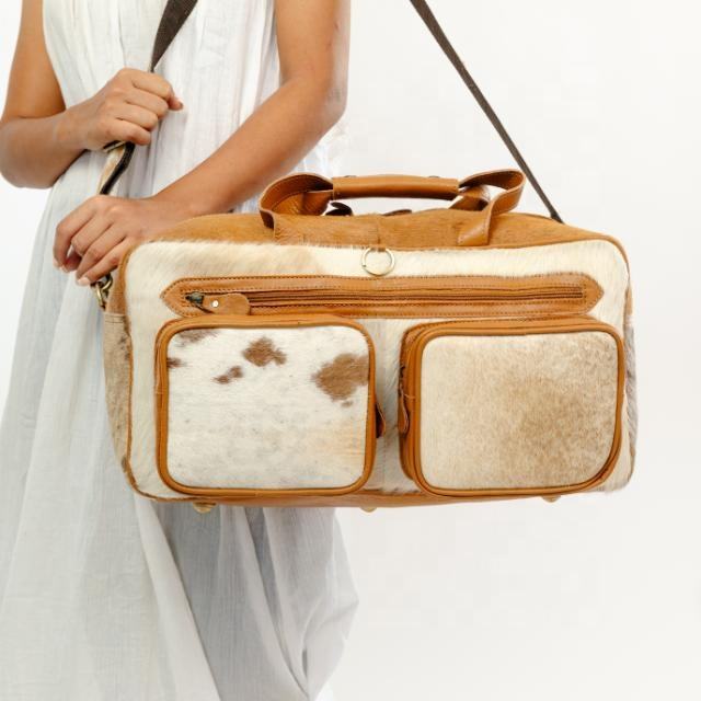 Women's Unique Tooled Hair On Genuine Leather Duffel Hand Bags Set New Western Traditional Style Tassel Embossed Water Resistant
