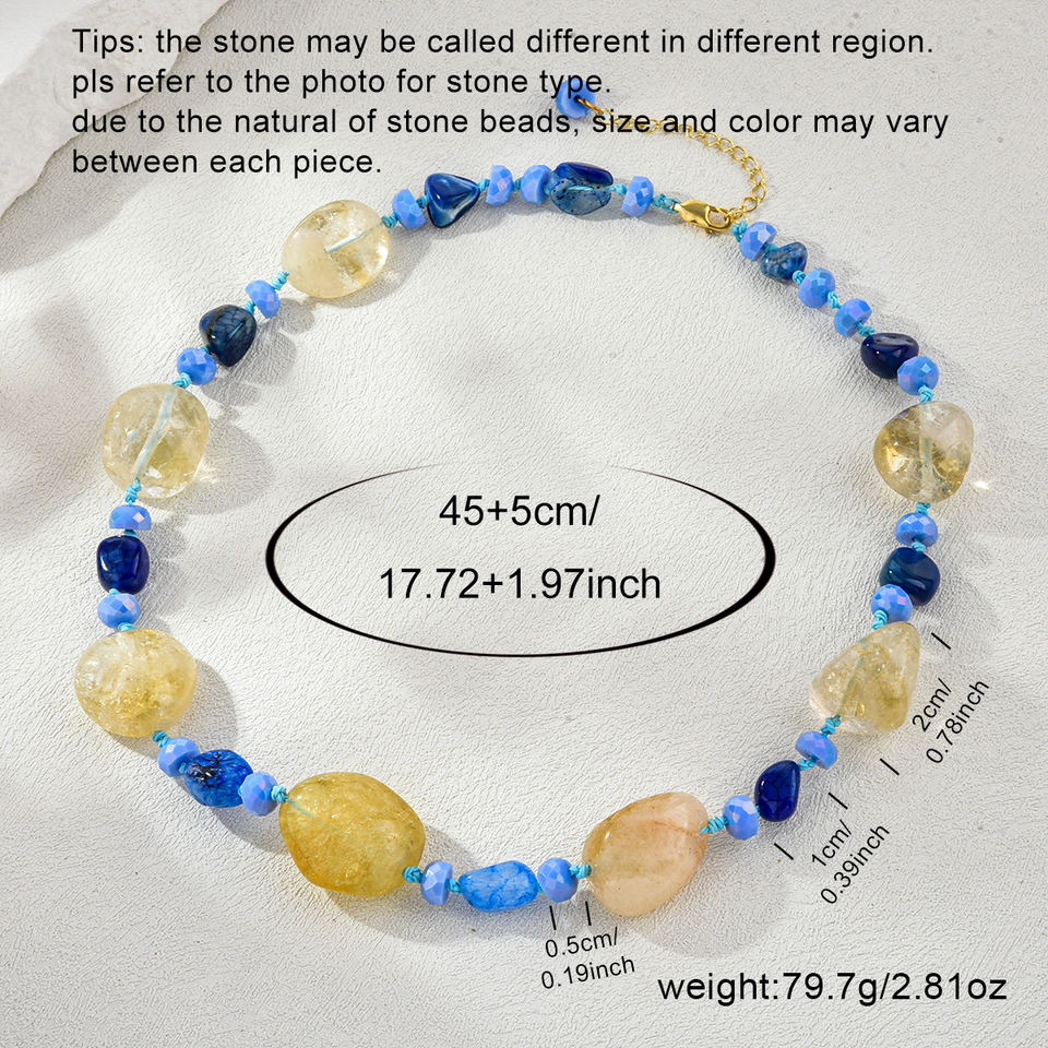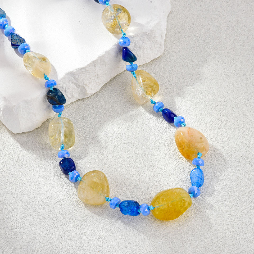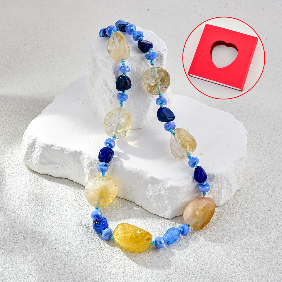 Women's Uniquely Beaded Fashion Necklace with Citrine and Lapis Lazuli for Summer Festivals Accessory