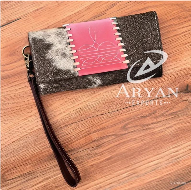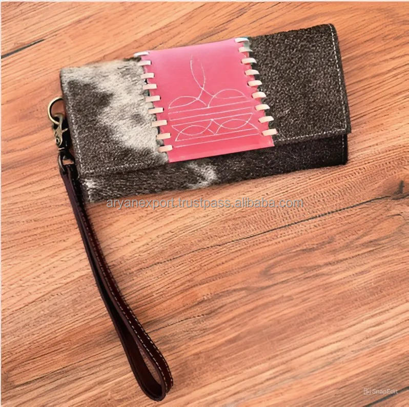 Women's Uses Cowhide Fur Leather Wallet Boot Stich Clutch Fur Multi Uses Purse Animal Print Fashionable Wristlet Hot Sale Purse