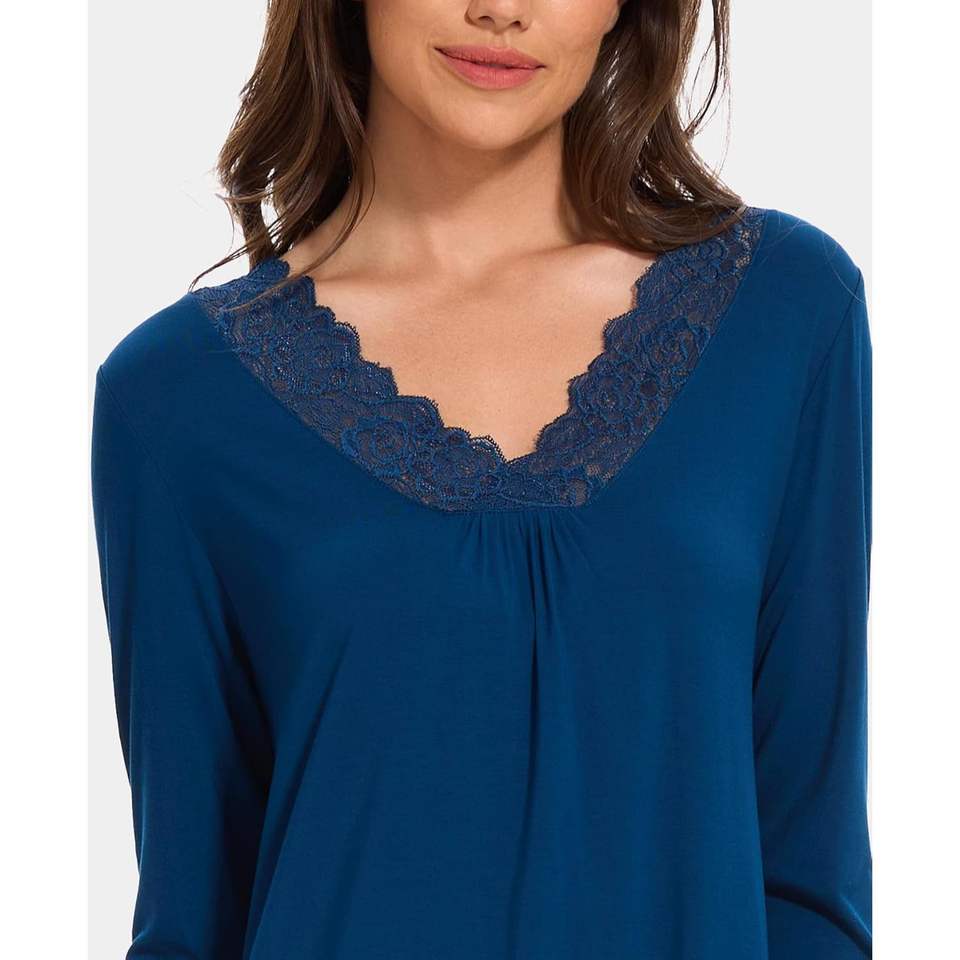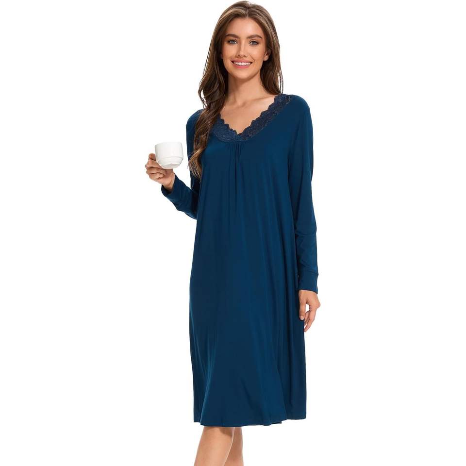 Women's V Neck Sleep Shirt Bamboo Women's Nightgown Long Sleeve Lace Sleep Dress Loungwear Pajama Dress Women Sets