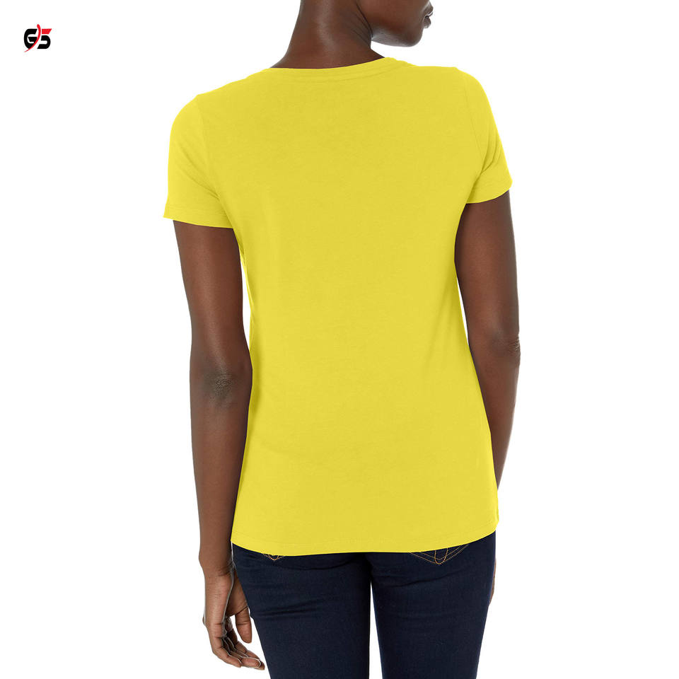 Women's V Neck T Shirt Short Sleeve Casual Wear 100% Cotton Custom Print Logo OEM Design Service 2025 Latest Style Product