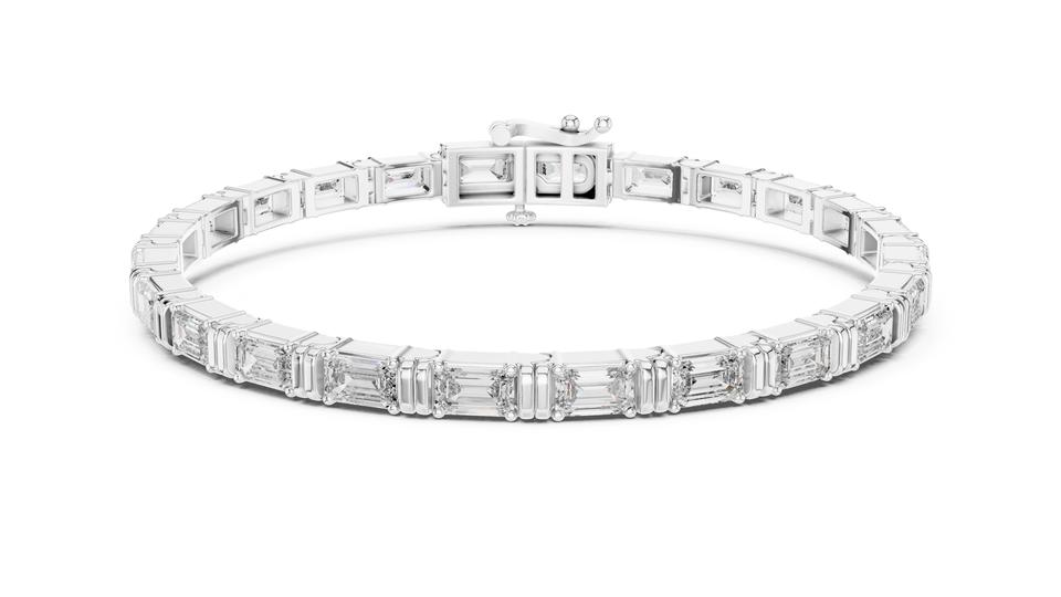 Women's VDS 925 Silver Tennis Bracelet Emerald Cut Lab Grown Diamond IGI Certified Classic Fine Jewelry Weddings Parties White