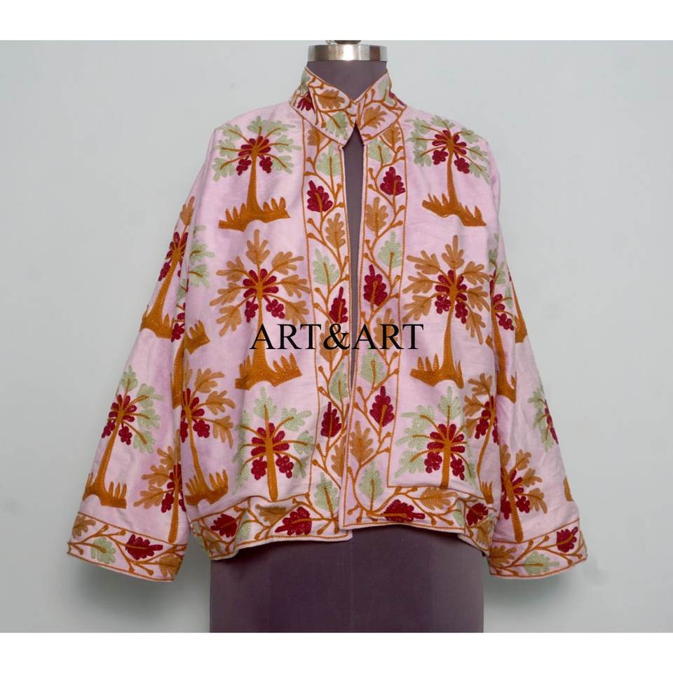 Women's Velvet Artisan Hand Embroidered Suzani Quilted Jacket Floral Design 100% Cotton Shell Woven Fabric Eco-Friendly Quick
