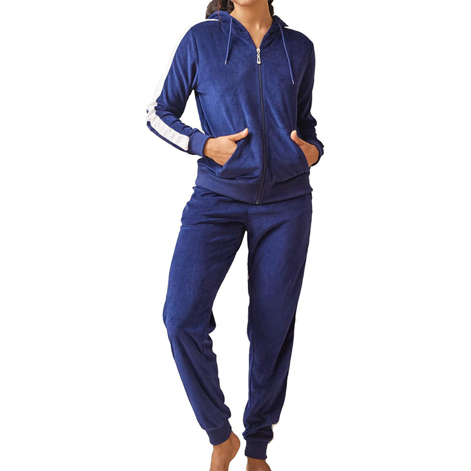 Women's Solid Velvet Hoodie Tracksuit | 2-Piece Sweatsuit | 100% Cotton Fleece | Soft Warm & Stylish Winter Wear