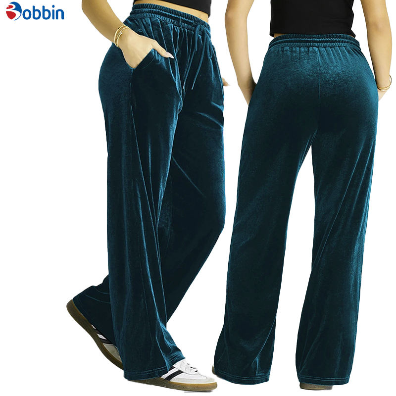 Women's Velvet Pants & Trousers Breathable Solid Color Custom Design Women Solid Drawstring Waist Wide Leg Jogger Jogging Pants