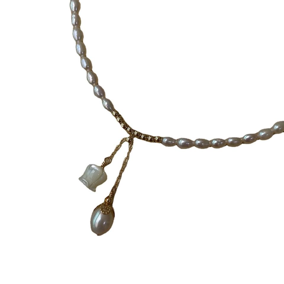 Women's Versatile 14K Gold-Plated Natural Freshwater Pearl Shell Lily of Valley Collarbone Chain Millet Necklace Religious Style