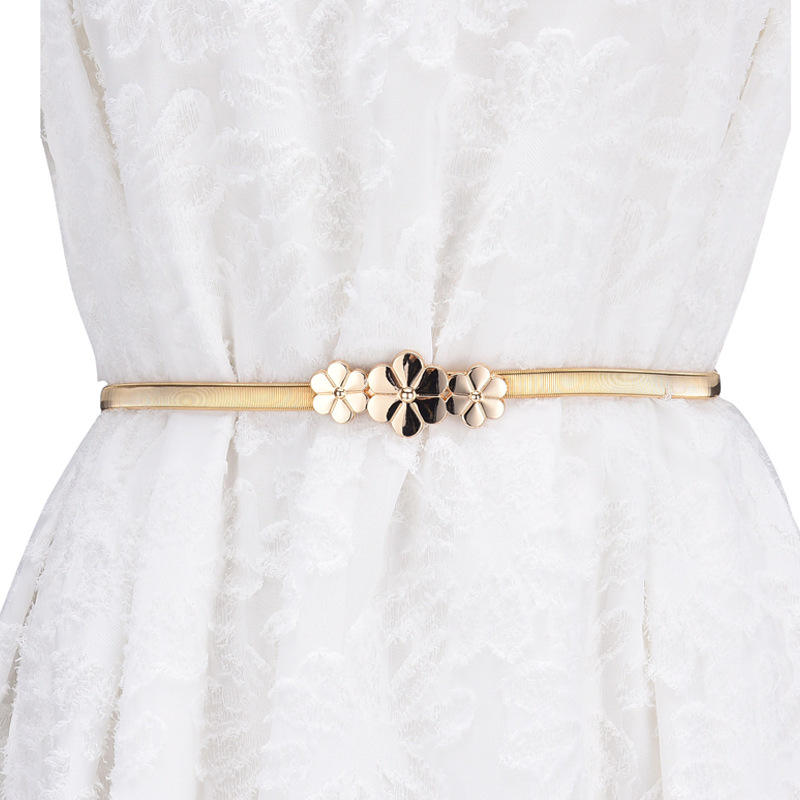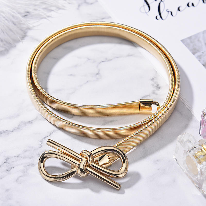 Women's Versatile Beaded Belt with Bow Tie Decoration Simple Thin Elastic Waist Chain Fashionable Metal Accessories