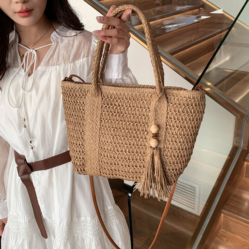 Summer Woven Straw Beach Tote Shoulder Bag Crochet Travel Vacation