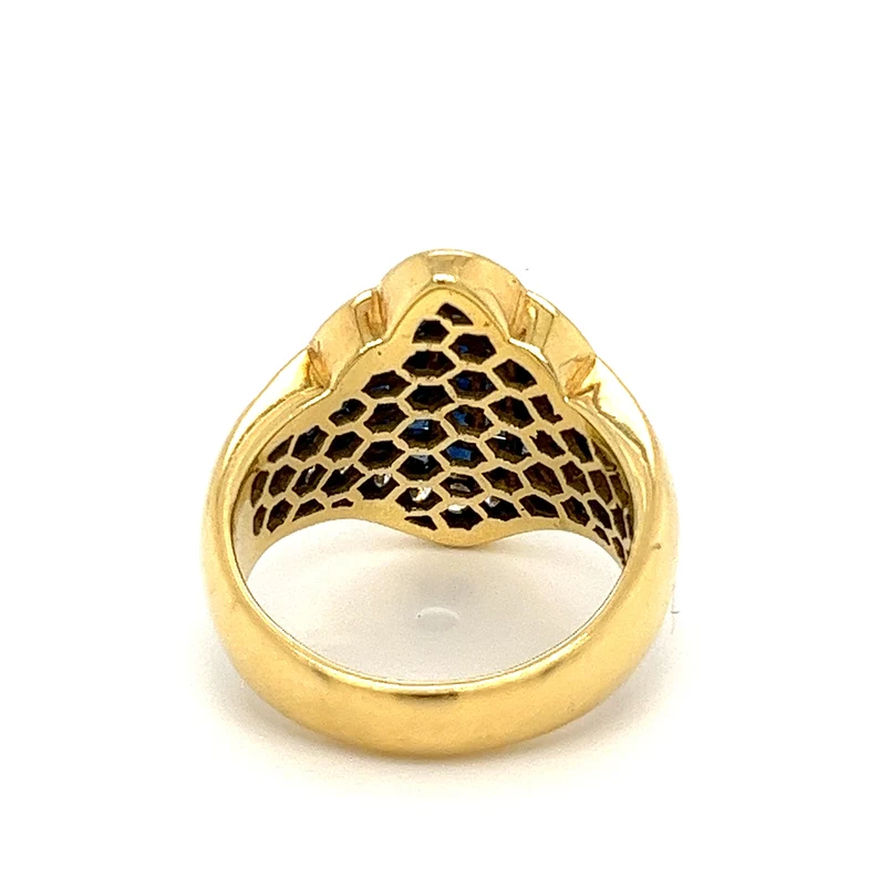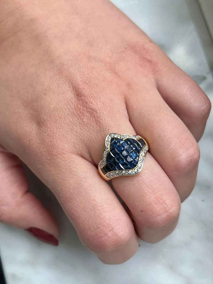 Women's Vintage Cluster Ring 18K Yellow Gold Plated Blue Sapphire And Diamond Princess Cut IGI Certified