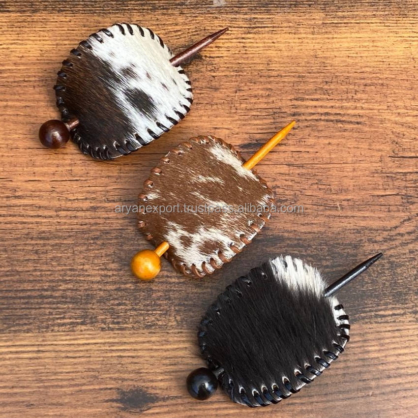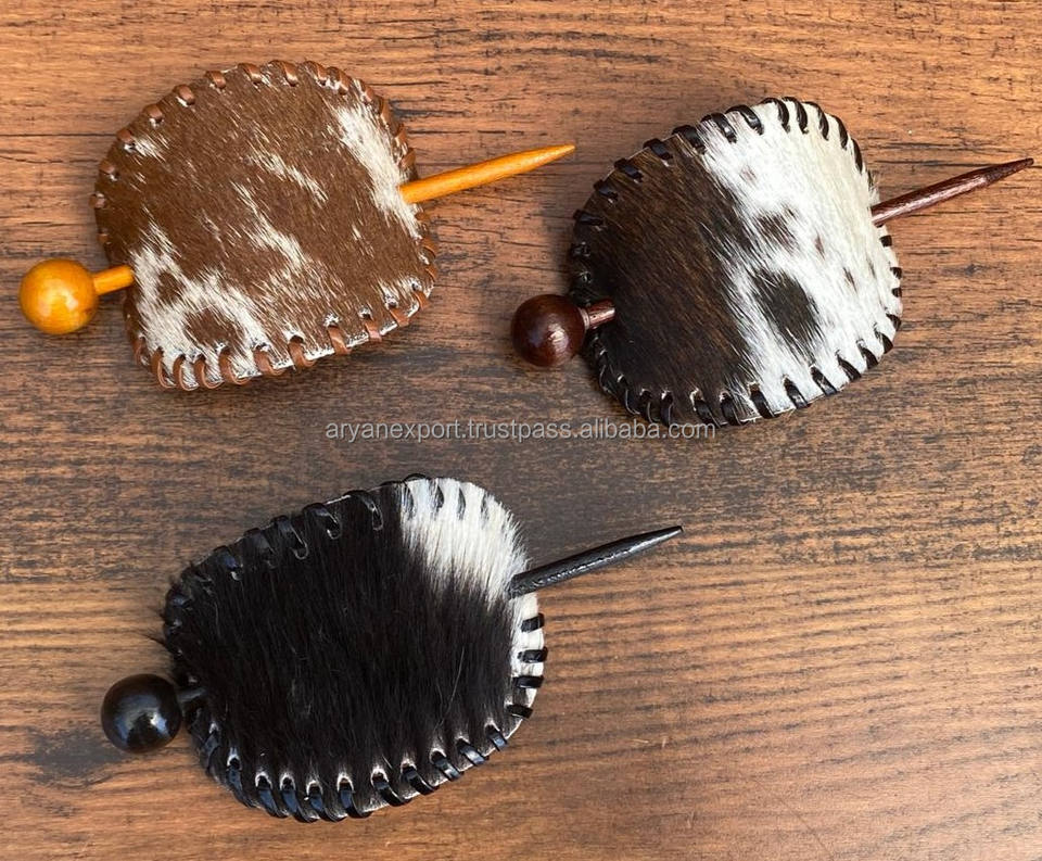 Product Name:Cowhide Leather Hair Barrette with Stick