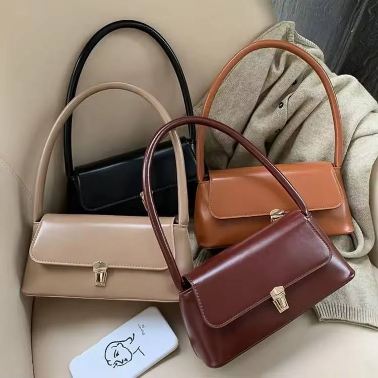 Women's Vintage Design PU Leather Shoulder Handbags Underarm Bags with Button Closure Solid Color Fashionable Z0914