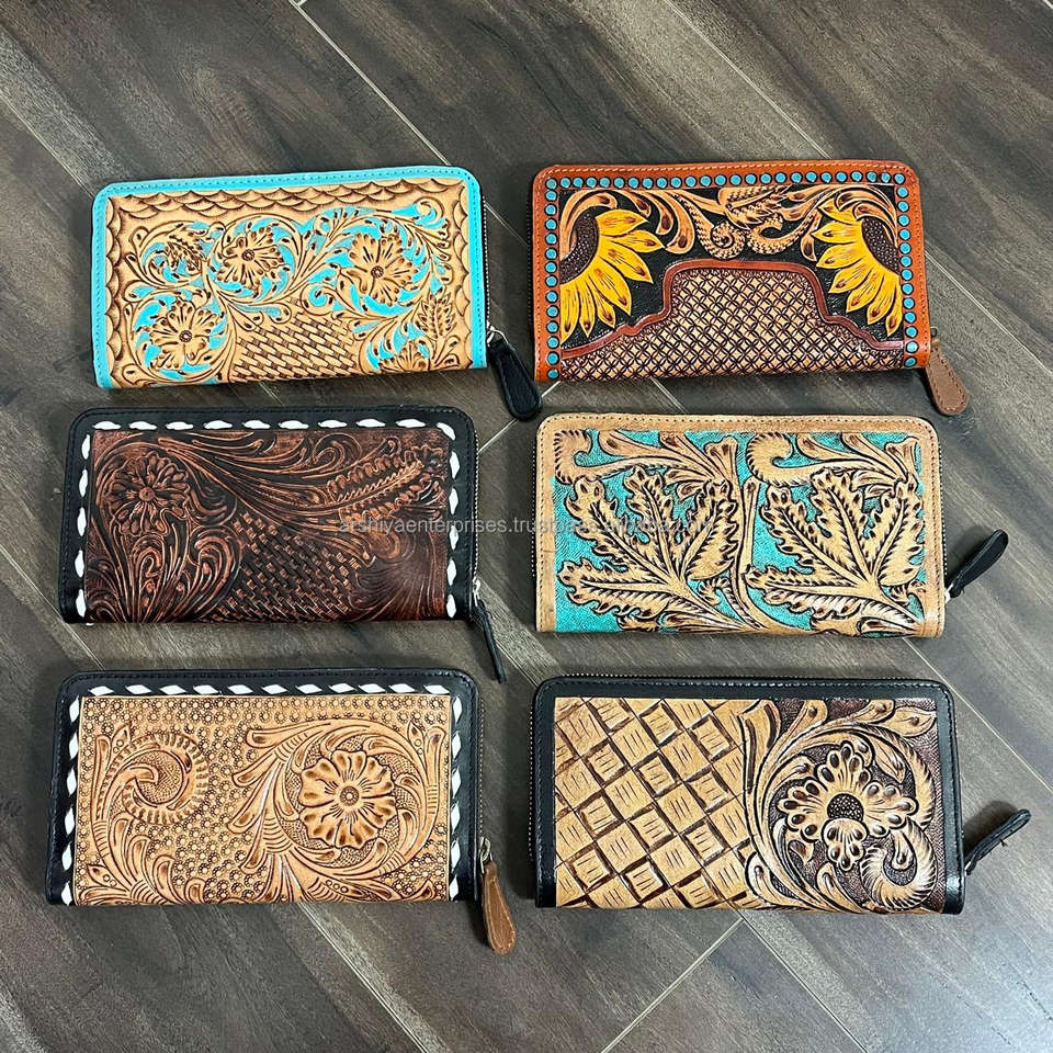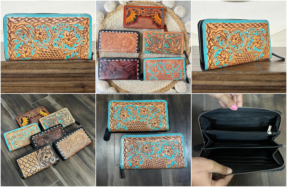 Type:Hand Tooled Genuine Leather Card Holder Wallet