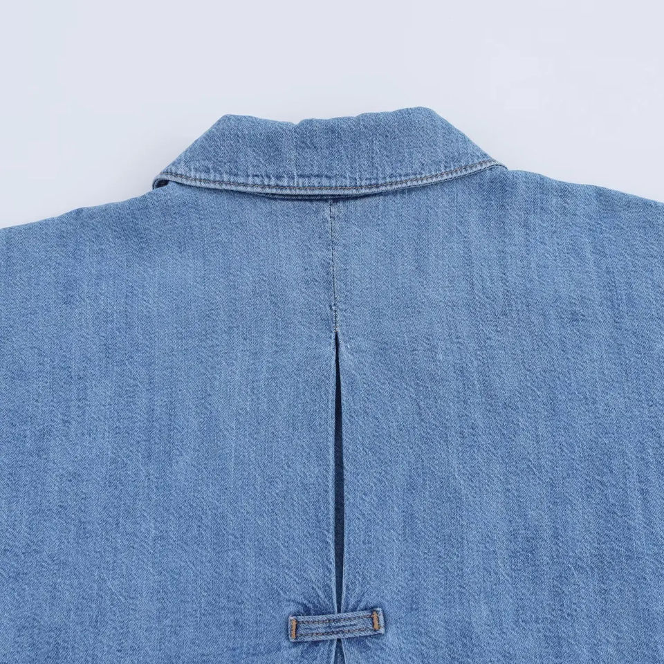 Keywords:Women's Fashion Wide Sleeve Denim Shirt Polo Collar