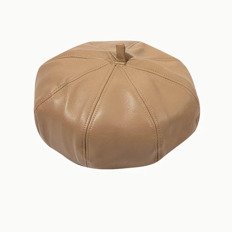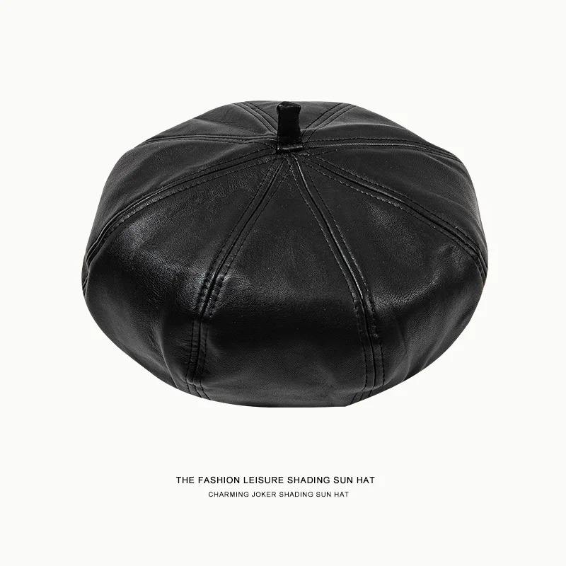 Women's Vintage Plain Beret Hat Elegant PU Leather Spring Beanie Cap Adjustable for All Head Sizes Casual Scene Suitable