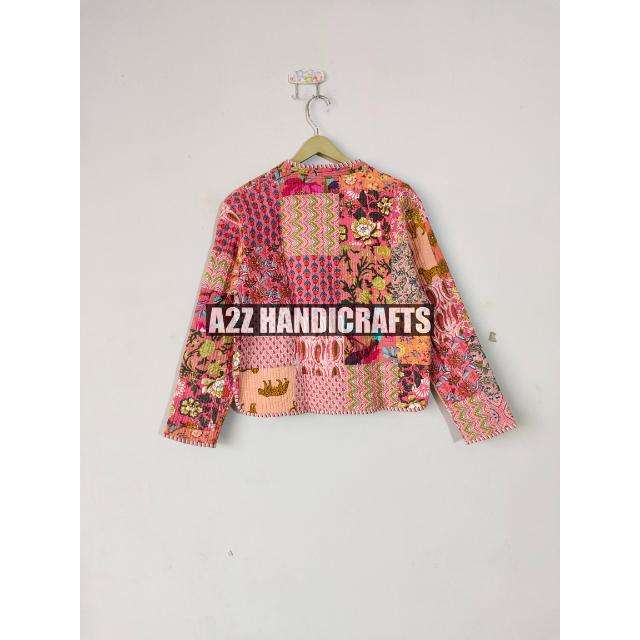 Women's Vintage Quilted Coats Handmade Cotton Jacket Animal Double-Sided Wear Front Open Kimono Stripe Piping New Printed