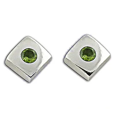 Women's Vintage Silver Rose Gold White Gold Yellow Gold Square Stud Earrings with Peridot & Diamond 14K Gold Jewelry