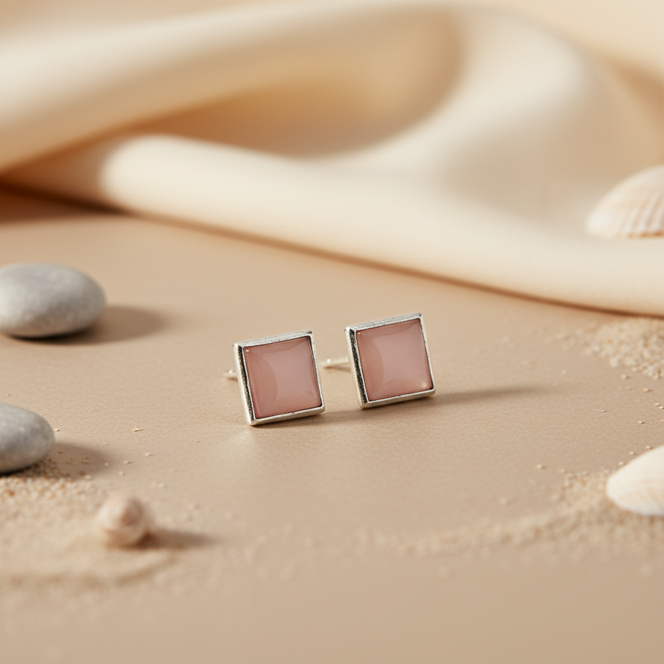 Women's Vintage Silver Square Stud Earrings Red Fashionable Religious Cute Geometric Animal Pattern Religious Gift Made Brass