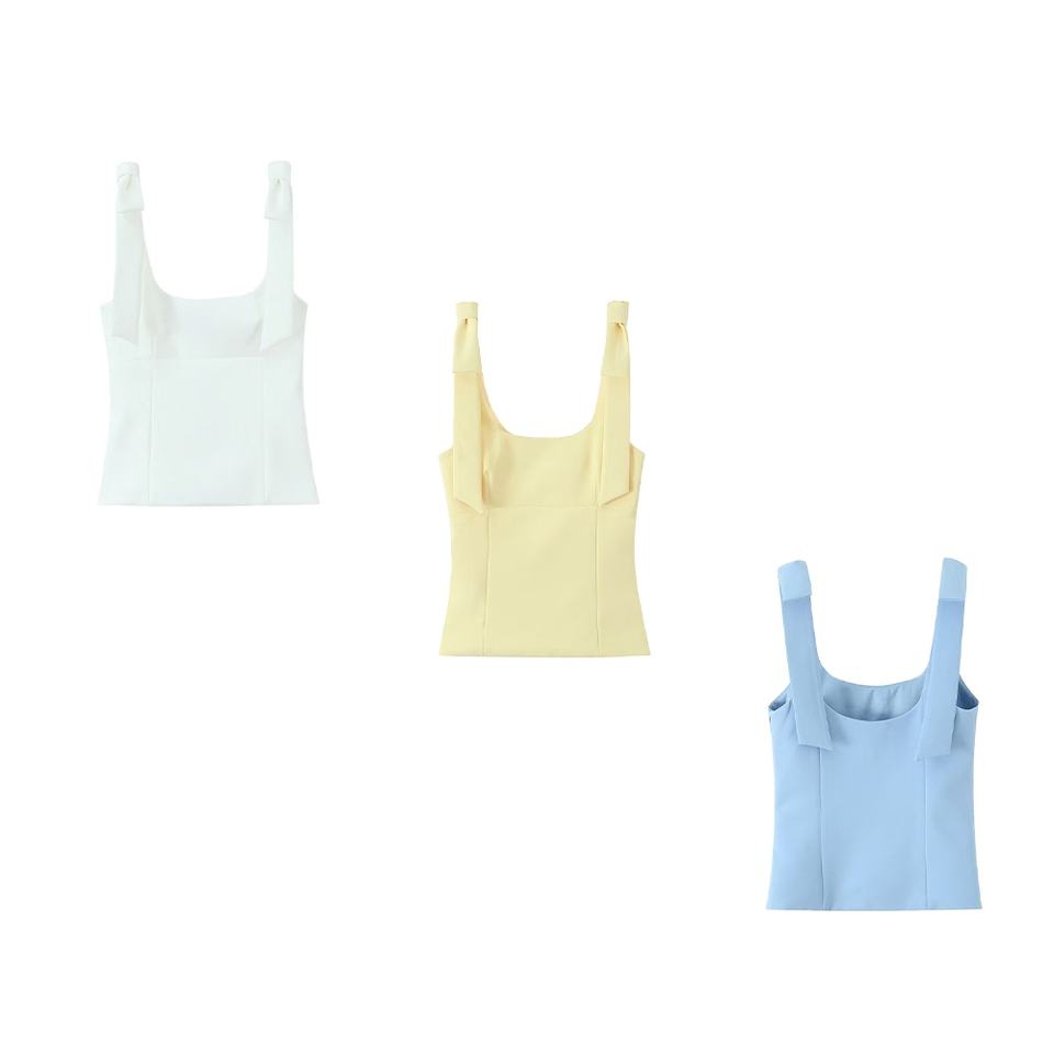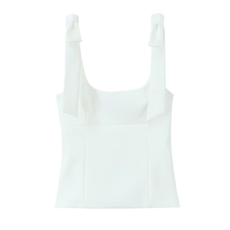 Women's Vintage Tank Tops for Spring New Backless Halter Bow Tie Ribbon Casual Knitted Tops Front Logo 100% Polyester