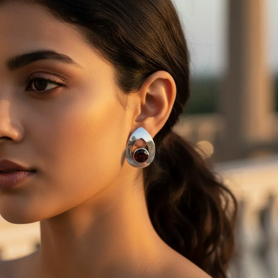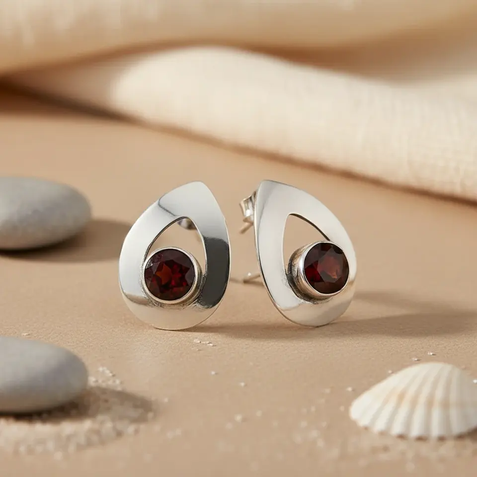 Women's Vintage & Trendy Garnet Stud Earrings 925 Silver 14K Gold Plating White Yellow Gold Material Diamond Main Stone Jewelry