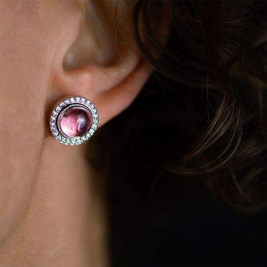 Women's Vintage Vintage 925 Sterling Silver Pink Quartz Stud Earrings Natural Gemstone CZ Set Round Pink Quartz Jewelry