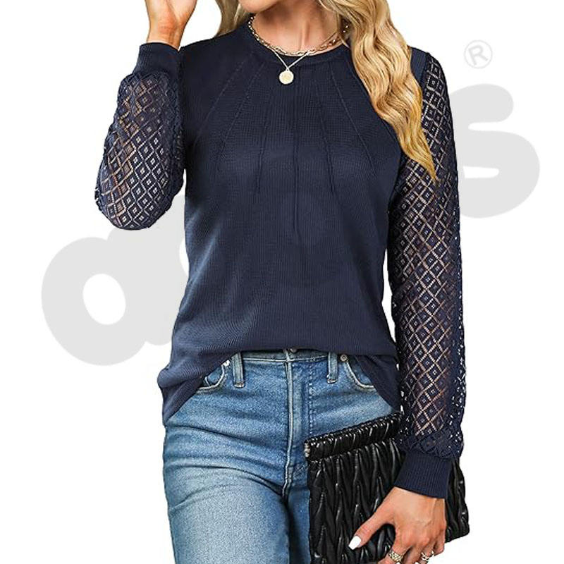 Women's Waffle Knit Tops Dressy Business Casual Blouses Lace Long Sleeve Work Shirts Fall Clothes New Style O-Neck T-shirt dress