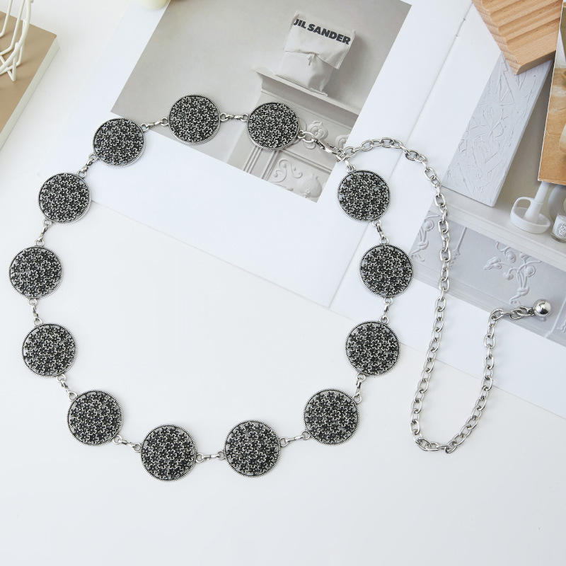 Women's Elegant Bohemian Beaded Waist Cincher Wispy Disc Metal Belt with Suit Skirt Beaded Waist Chain