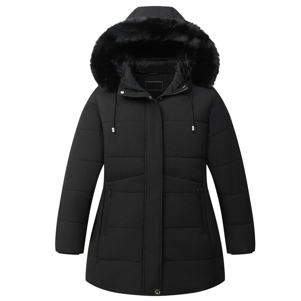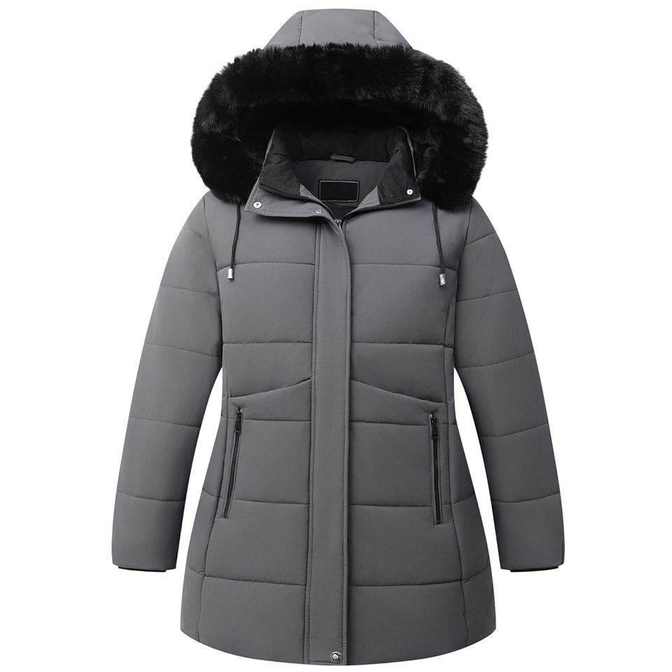 Women's Waterproof Breathable Quick Dry Eco-Friendly Thickened Quilted Winter Parka Hoodie Jacket with Polyester Filling