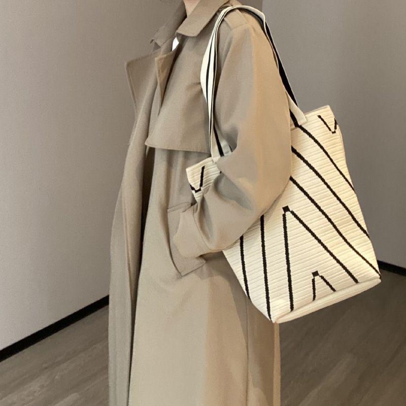 Women's Wavy Knitted Shoulder Bag Shopping Large Capacity Commuting Bucket Bag