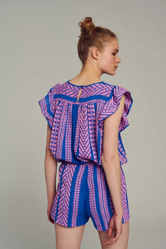 Women's Wear 2-Piece Set V-Weaving Textured Top and Shorts Dress Butterfly Short Sleeve Romper Dress for Stylish for Hot Weather
