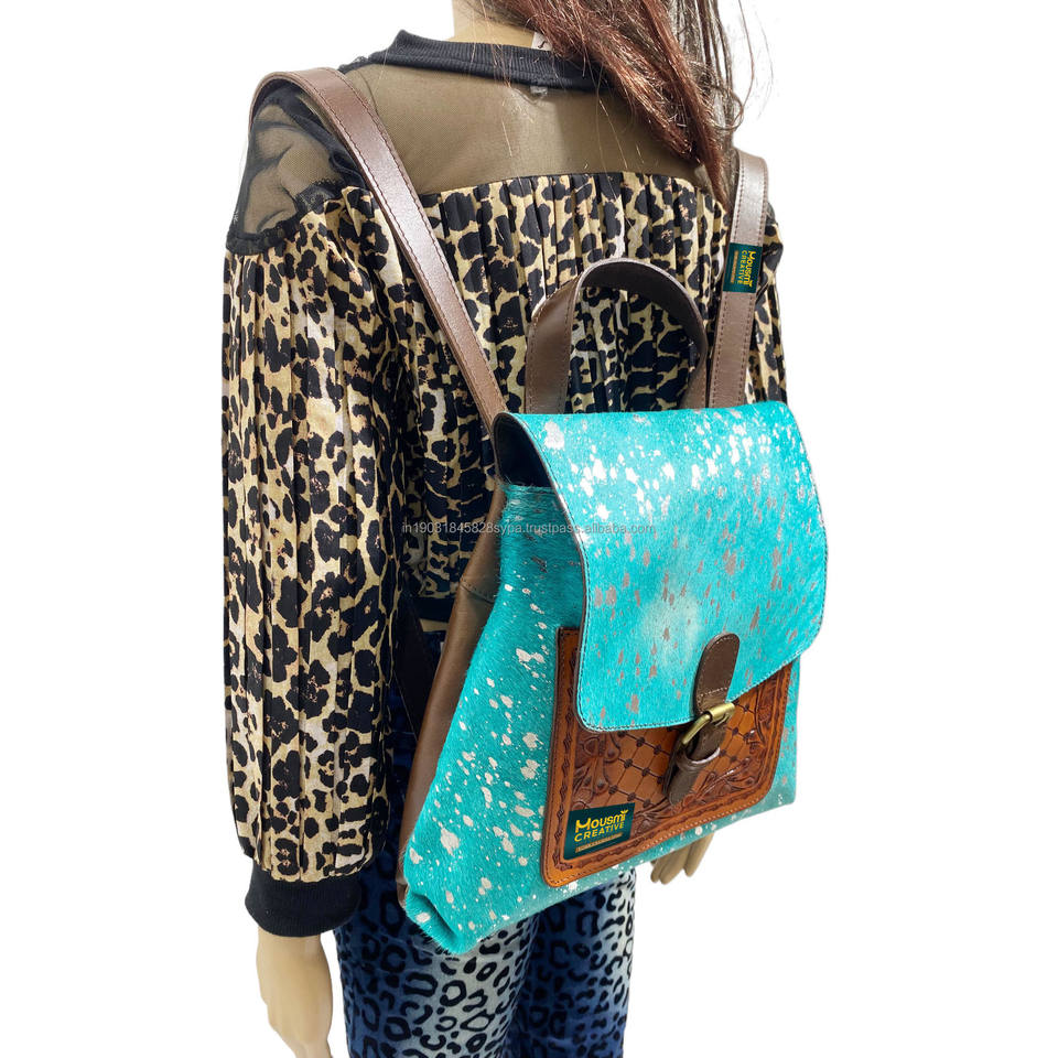 Acid Wash Hair on, Tote Style Women's Casual Backpack, Genuine Cowhide, Heavy Duty Metal Shoulder Strap Adjuster