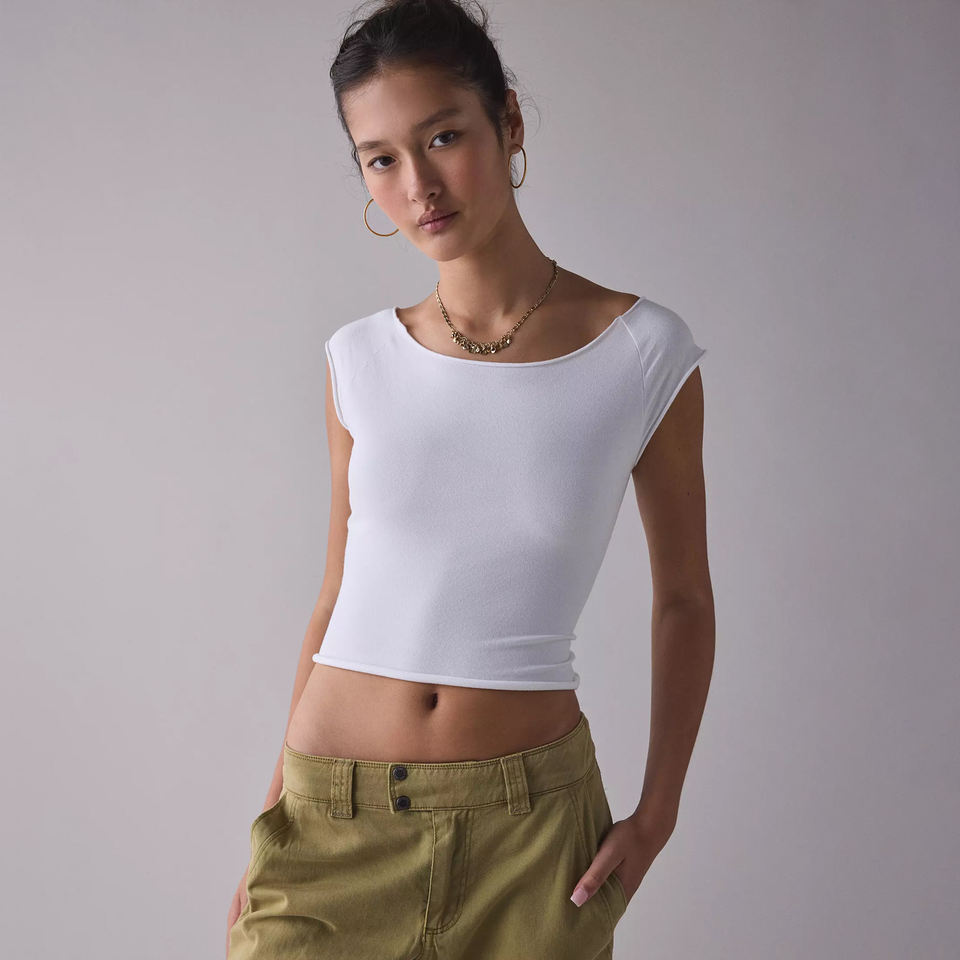 Women's White Boat Neck Baby Tee 100% Cotton Cap Sleeve Cropped Slim Fit Top Custom Graphics Print T Shirt Wholesale