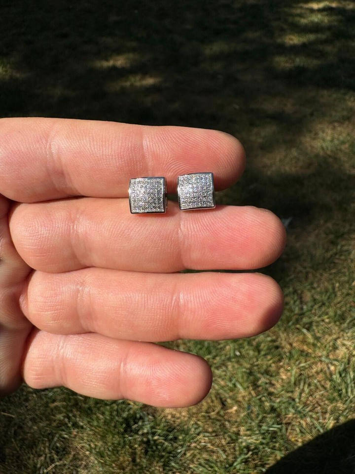 Women's White Diamond Earrings Square Dome Hip Hop Style 925 Silver Plated Stylish Stainless Steel Jewelry for Fashion & Gift