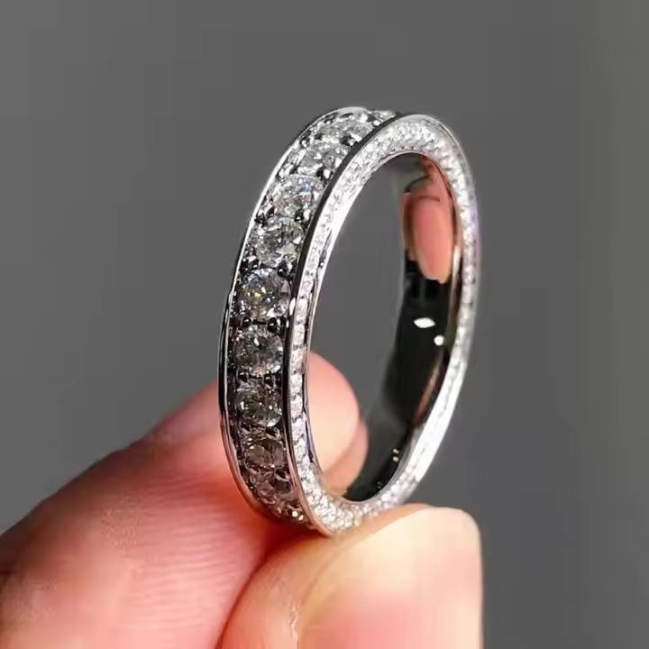 Women's White Gold Plated Wedding Band Original Moissanite Diamond Eternity Ring 925 Solid Silver Fine vermeil Rings for Him