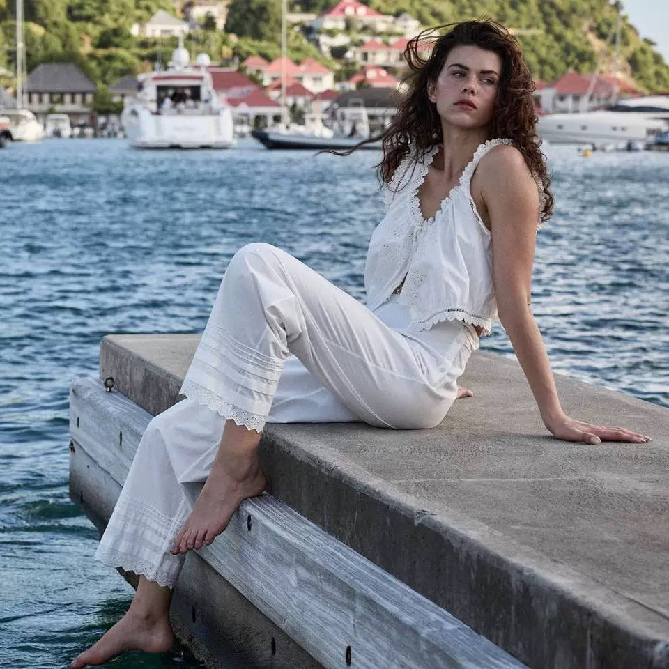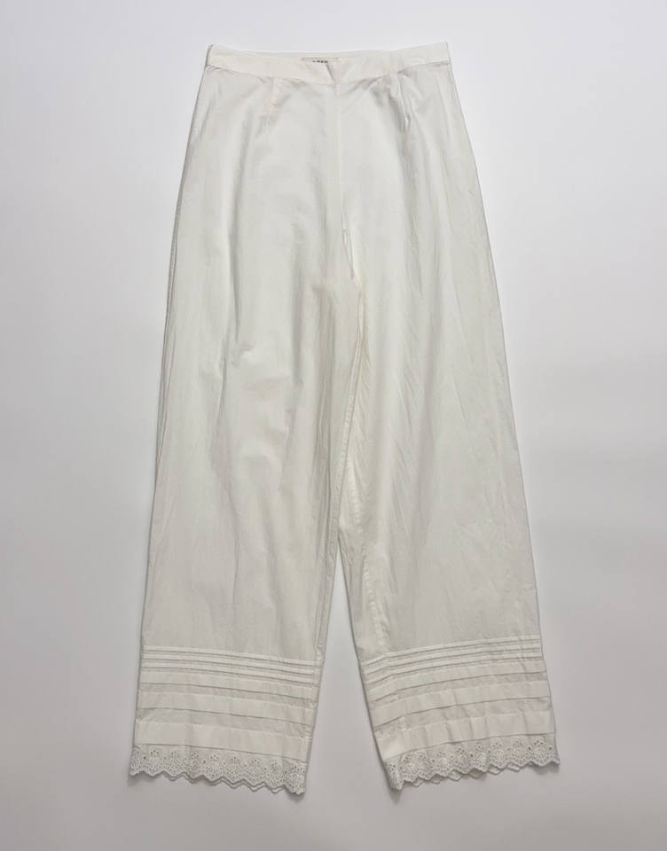 Women's White Mid Waist Breathable Summer Lace Embroidered Slimming Straight Leg Casual Button Detail Trousers