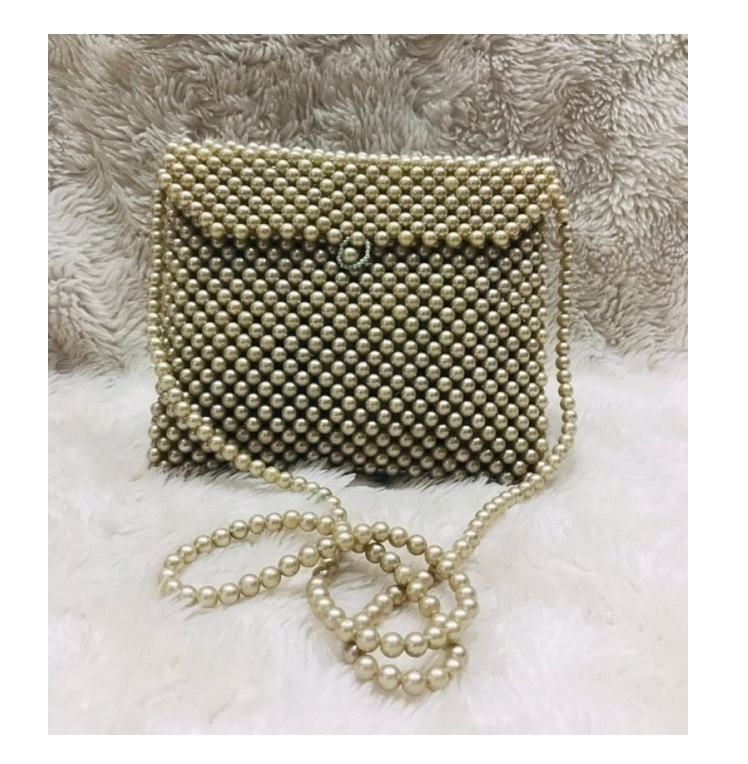 Women's White Summer Evening Handbag Pearl Beaded Clutch Cover Closure Wedding Party Purse Tote Bag