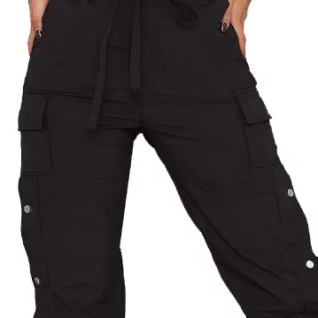 Women's Winter Casual High Waist Fleece Sweatpants Cargo Pants with Pockets Breathable Customizable Design Black