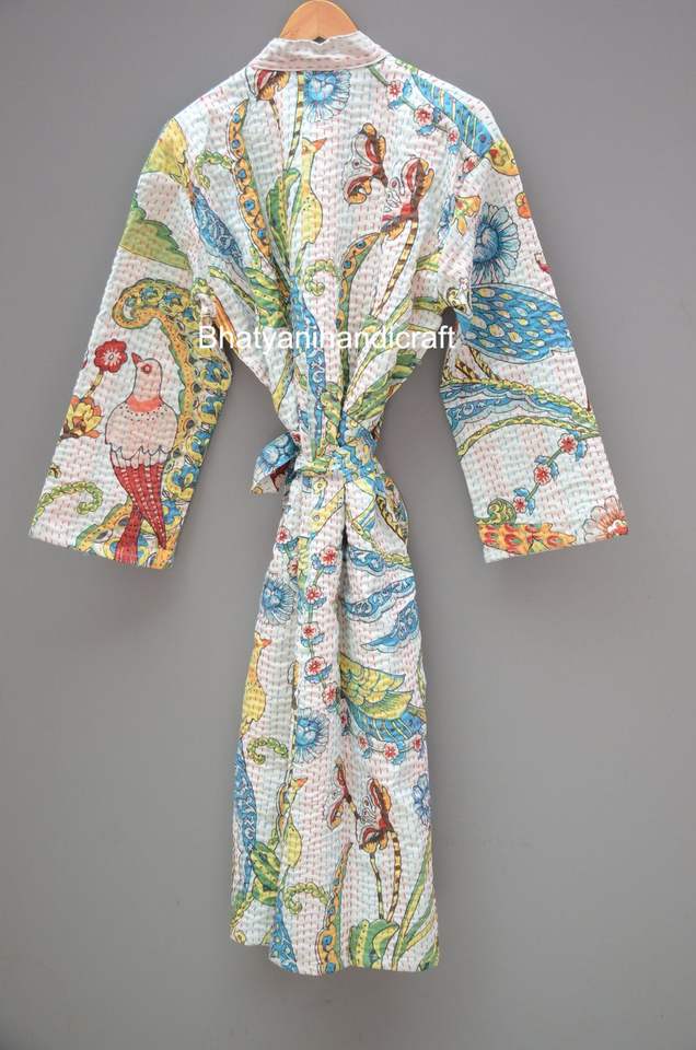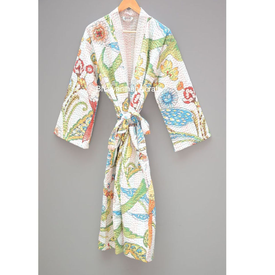 Women's Winter Jacket Long Cotton-Filled Quilted Robe Floral Night Beach Wear Bridal Dressing Gown Beach Wear-New Kantha Floral