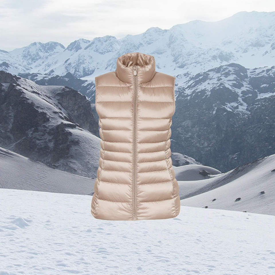 Women's Winter Jacket New Fashion Casual Sleeveless Zippered Puffer Vest Black Quilted Windproof Sheep Skin Leather Raw
