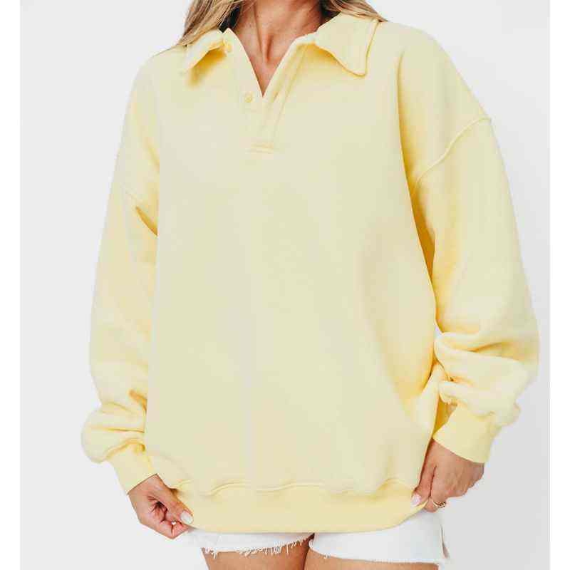 Women's Winter Long Fleece for Sweatshirt 1/4 Zip Mockneck Butter Yellow/Buttercream Pullover