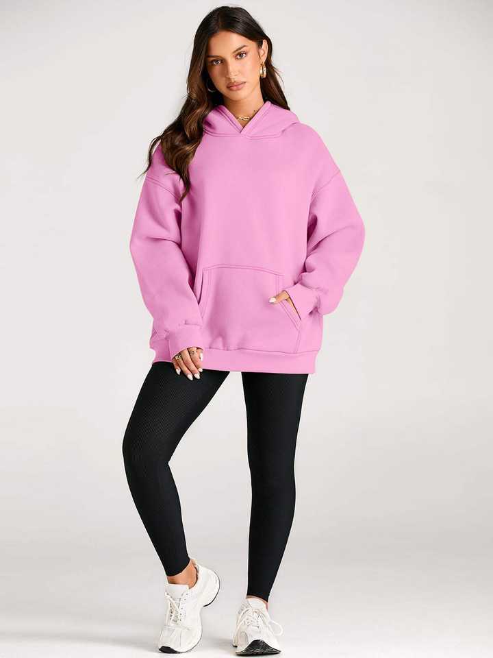 Women's Winter Oversize Hoodies Casual Loose Vintage Fleece Pullover Sweatshirts Front Logo Customizable Made in Pakistan