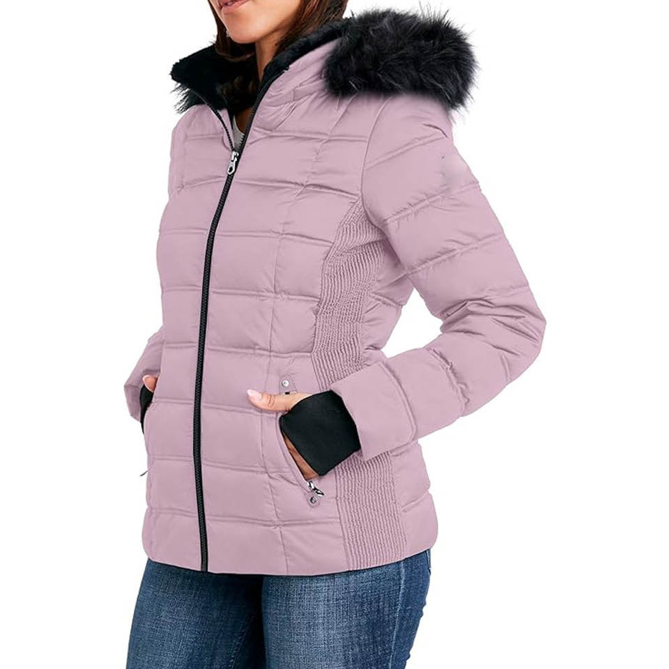 Women's Winter Quilted Long Puffer Jacket Plus Size Windproof Oversized with Breathable Hood Knitted Processing