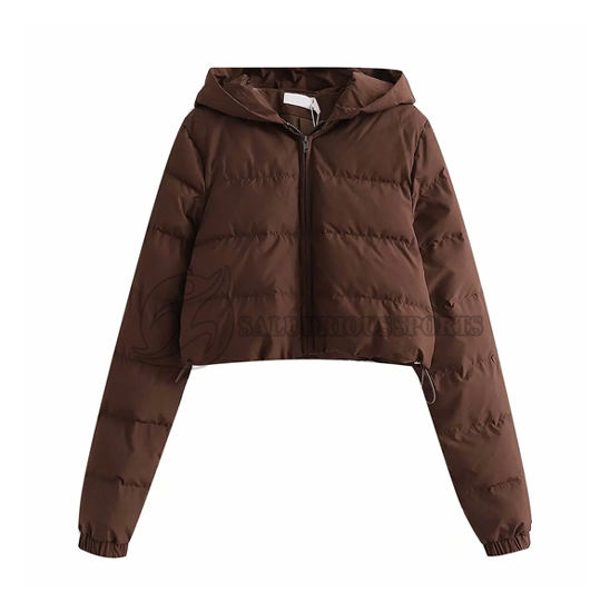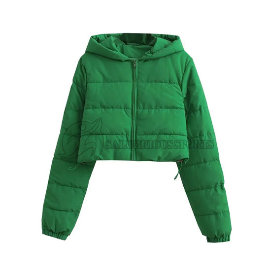 Women's Winter Satin Bomber Jacket With Hooded Collar Long Sleeves Short Padded Thick Warm Printed Outdoor Wholesale Supply