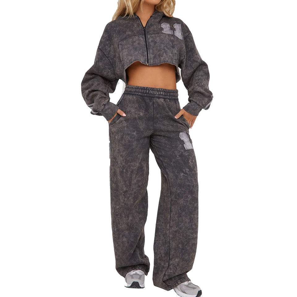 Product Name:Women Cropped Tracksuits Acid Wash