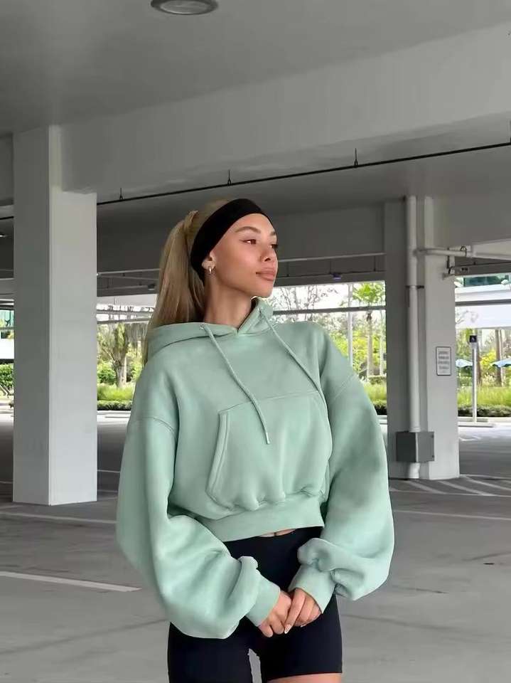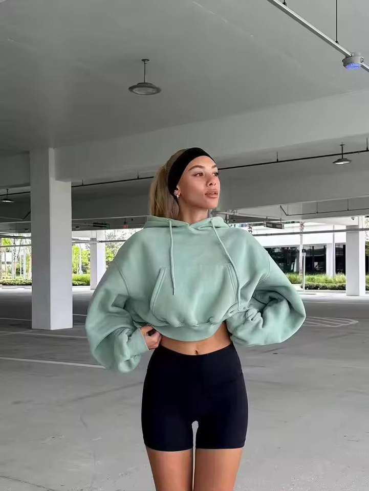 Women's Winter Streetwear Comfortable Hooded Crop Top Hoodies with Front Logo Hot Selling Premium Quality for Sale