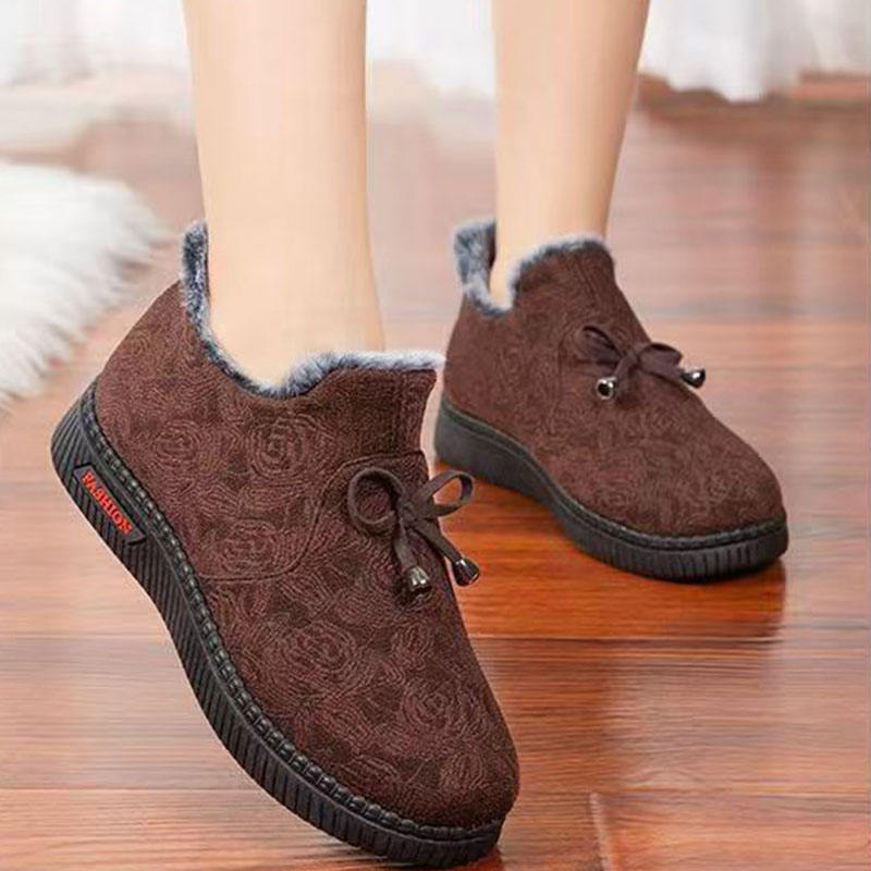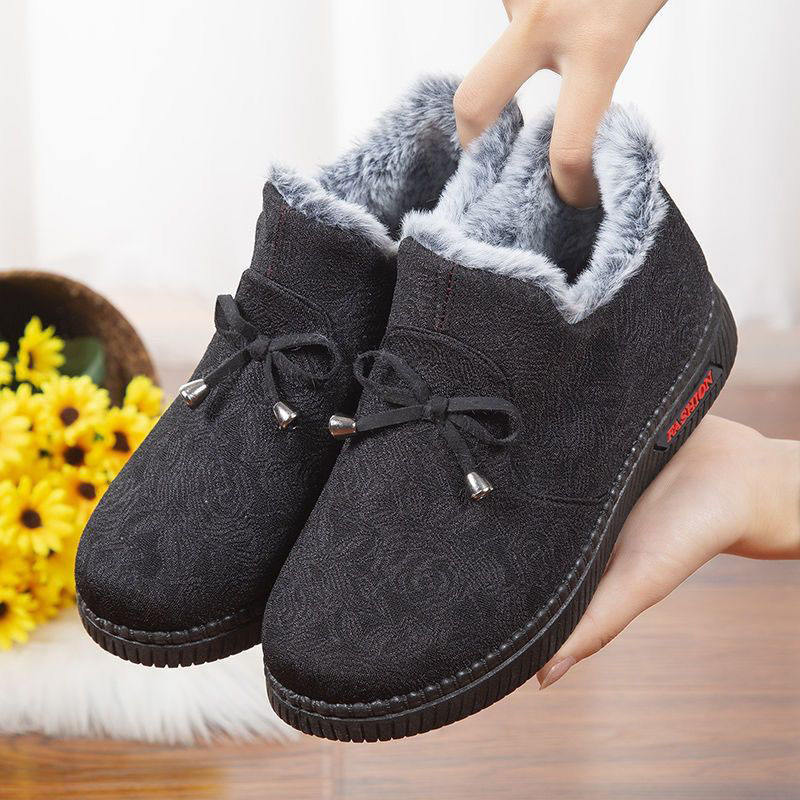 Women's Winter Thickened Slip-On Cloth Shoes Plush Fleece Lining Home Slippers Ladies Warm Outdoor Flats Short Ankle Boots