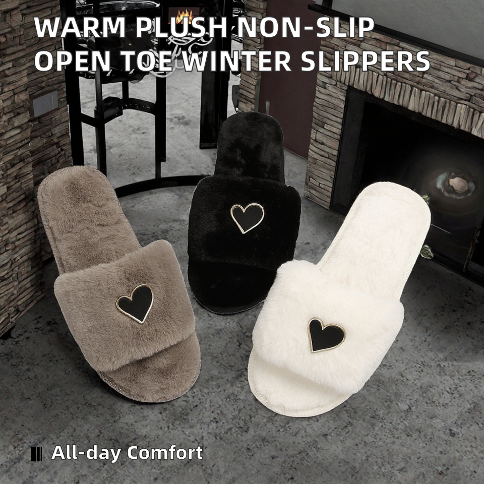 Women's Winter Warm Plush Fur Open Toe Soft Anti-Slippery Comfort Indoor Home Shoes
