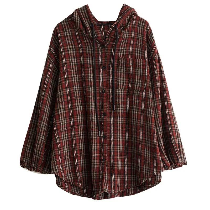 Women's Winter Wool Lined Flannel Plaid Jacket With Button Hooded Long Sleeved Jacket women Sweater Coat motorcycle style jacket